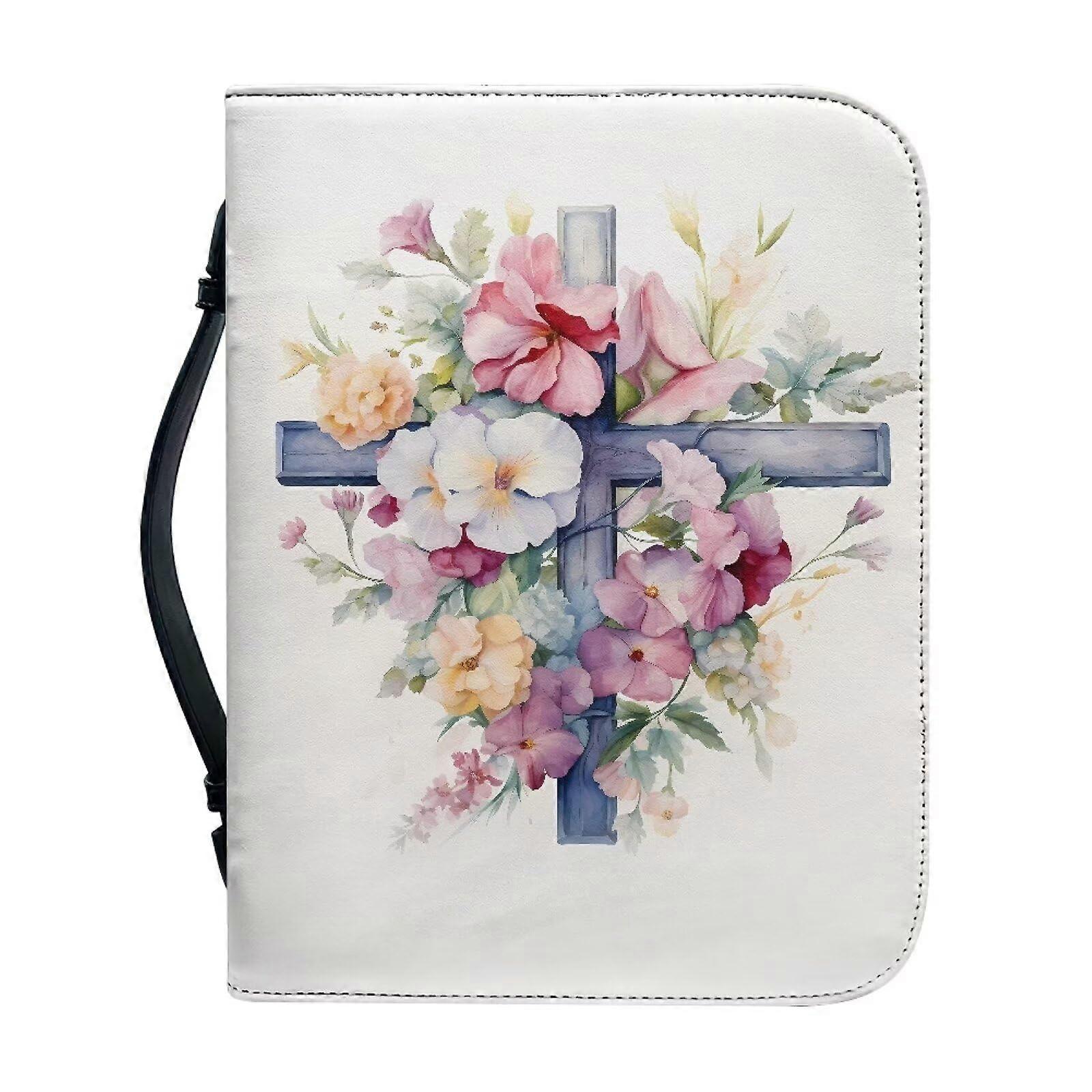 Bible Covers for Women and Girls, Leather Bible Carry Bag with Handle, Portable, Waterproof, Bible Protection Bag, Flower Cross, L10.2'x7'x1.9'