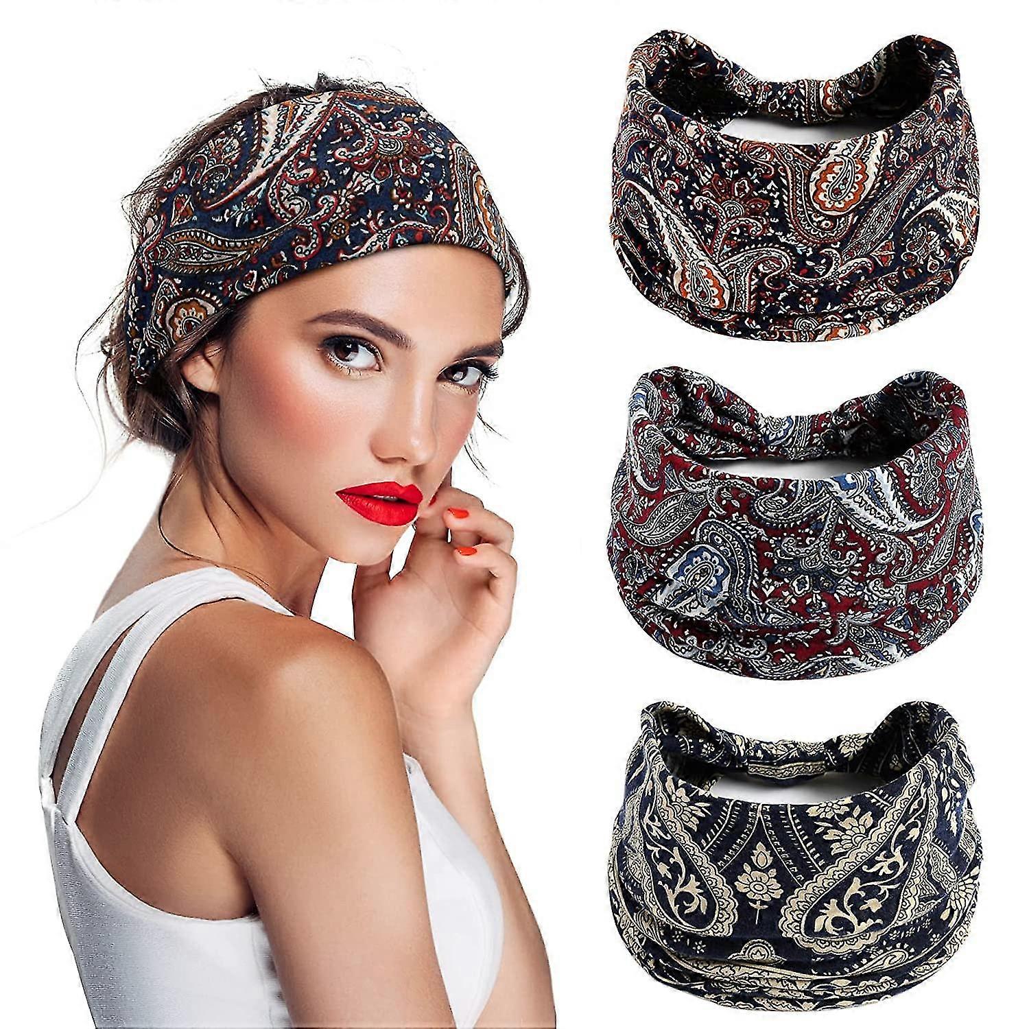 3 Pack Wide Boho Headbands For Women And Girls, Elastic Turban Head Wrap Non-slip Hair Bands For Sport Yoga And Running Headband