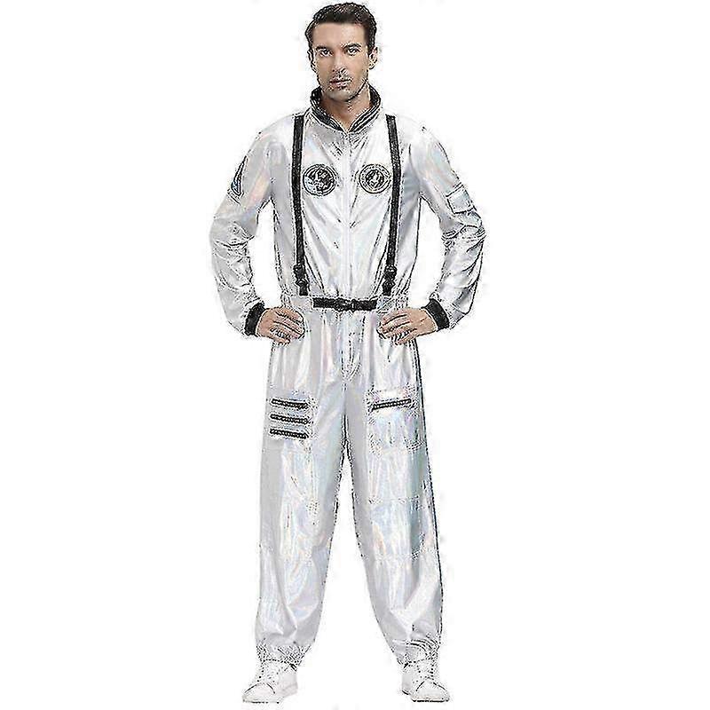 Unisex Astronaut Costume for Women and Men, Silver Space Suit Halloween Outfit for Adults, Spaceman Cosplay Costume for Party
