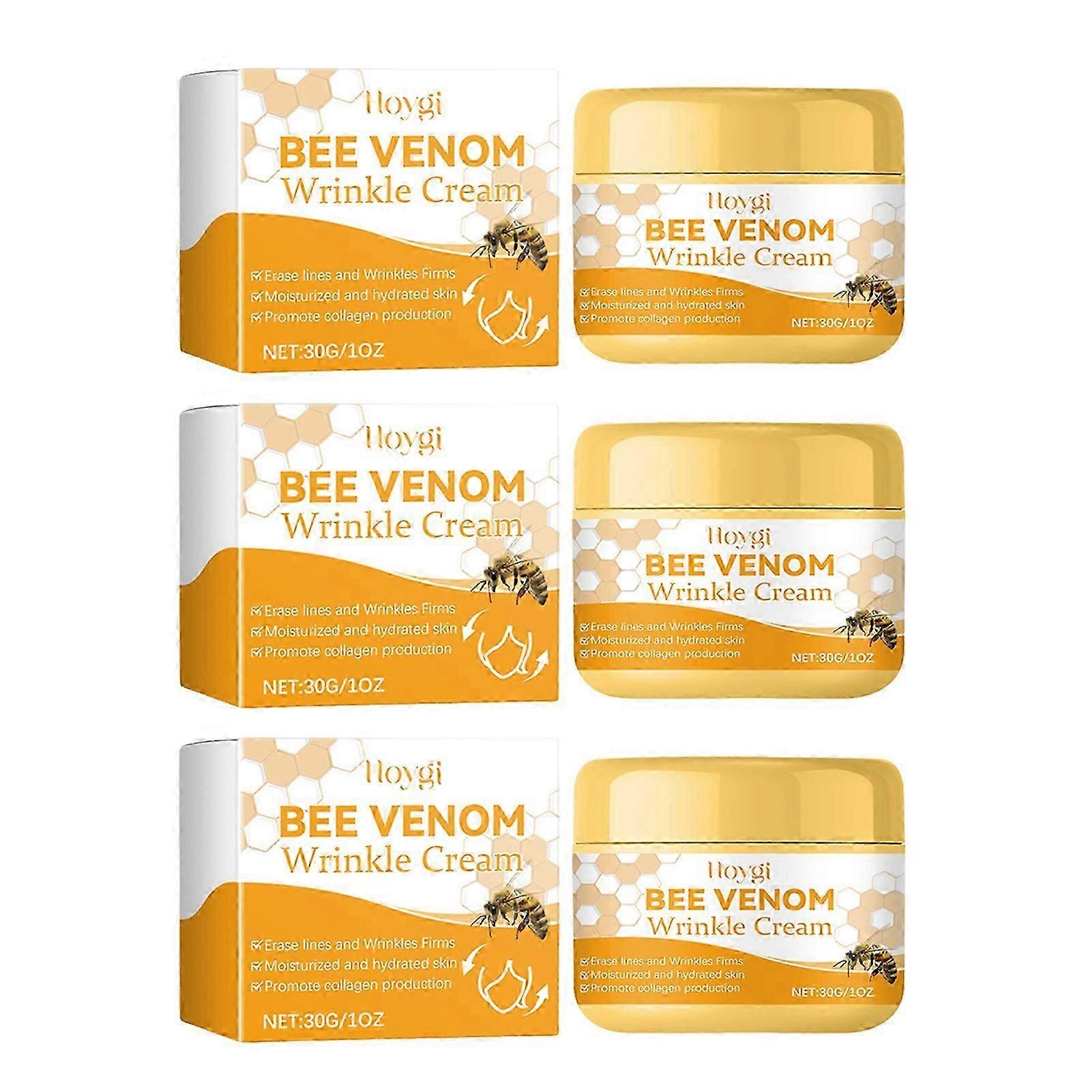 Features: Gentle, Natural Ingredients: The bee-venom cream is crafted with a gentle, natural formulas, featuring a blends of nourishing components such as beevenom. Suitable for use on all skin areas, this cream is intended for external application only. Wrinkle Reduction: Formulated to effectively reduce the appearance of facial wrinkles, this cream enhances skin firmness, elasticity, and overall smoothness, delivering visibles anti-aging. Hydrating and Nourishing: The cream provides ample moisture to the skin, keeping it well-hydrated without causing a dry or tight feeling. With continued use, it improves the overall texture of the skin, making it softer, more delicate. Convenient and Versatile: The bee-venom face cream is easy to carry and simple to use, making it suitable for a wide range of individuals, including students, sports enthusiasts, and retirees. Its portable size and user-friendly application allow for use anywhere, catering to your on-the-go life-style. Skincare: This Facial Moisturizer Cream is perfect for the women around you, for your mom, wife, friends, sisters, and colleagues on birthdays and various holidays. Notice: 1.Actual color may be slightly different from the image due to different light effect 2.Please allow 1-3cm deviation due to manual measurement Specification: 30g Package List: 1/2/3pcs Bee-venom Cream for Wrinkle Removing