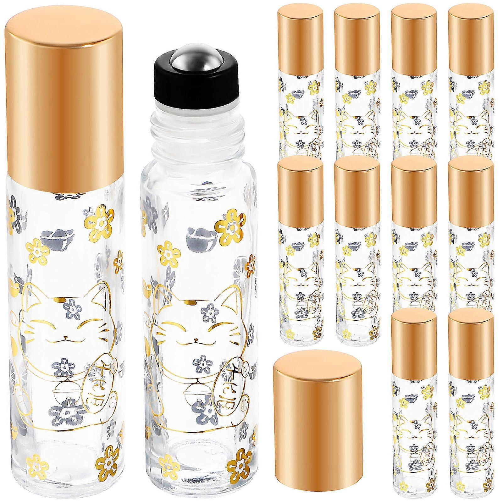 12 Pcs Essential Oil Storage Glass Roller Bottles In Assorted Color With Cartoon Fortune Cat Pattern For Women And DIY Enthusiasts