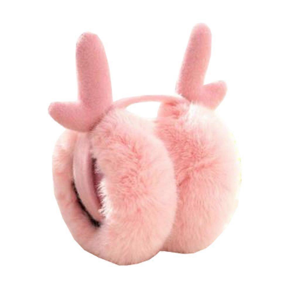 Women Cute Christmas Antlers Earmuffs Foldable Warm Fleece Earmuffs Ear Cover