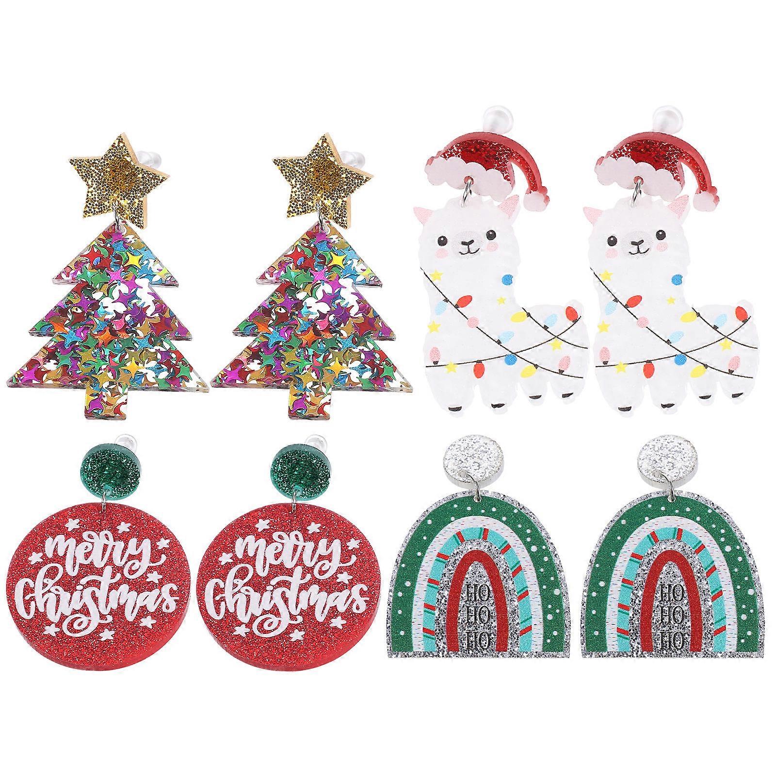 Festive Earrings For Women 4 Pairs Holiday Themed Earrings Dangle Design Ear Decoration Christmas 4.2x2.2cm