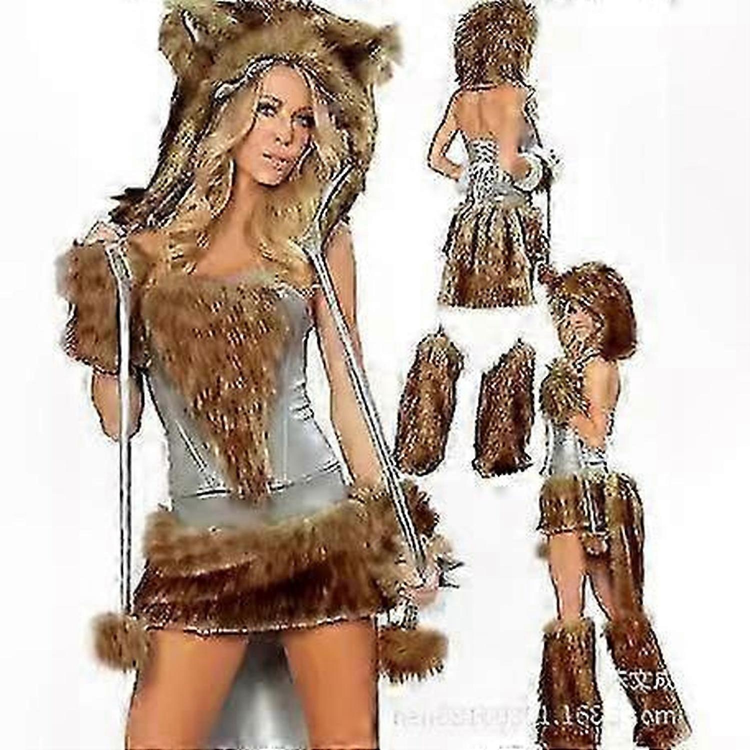 Festive Two-Piece Outfit for Women: Santa Cosplay with Wolf Tail Accessory for Holiday Parties and Events
