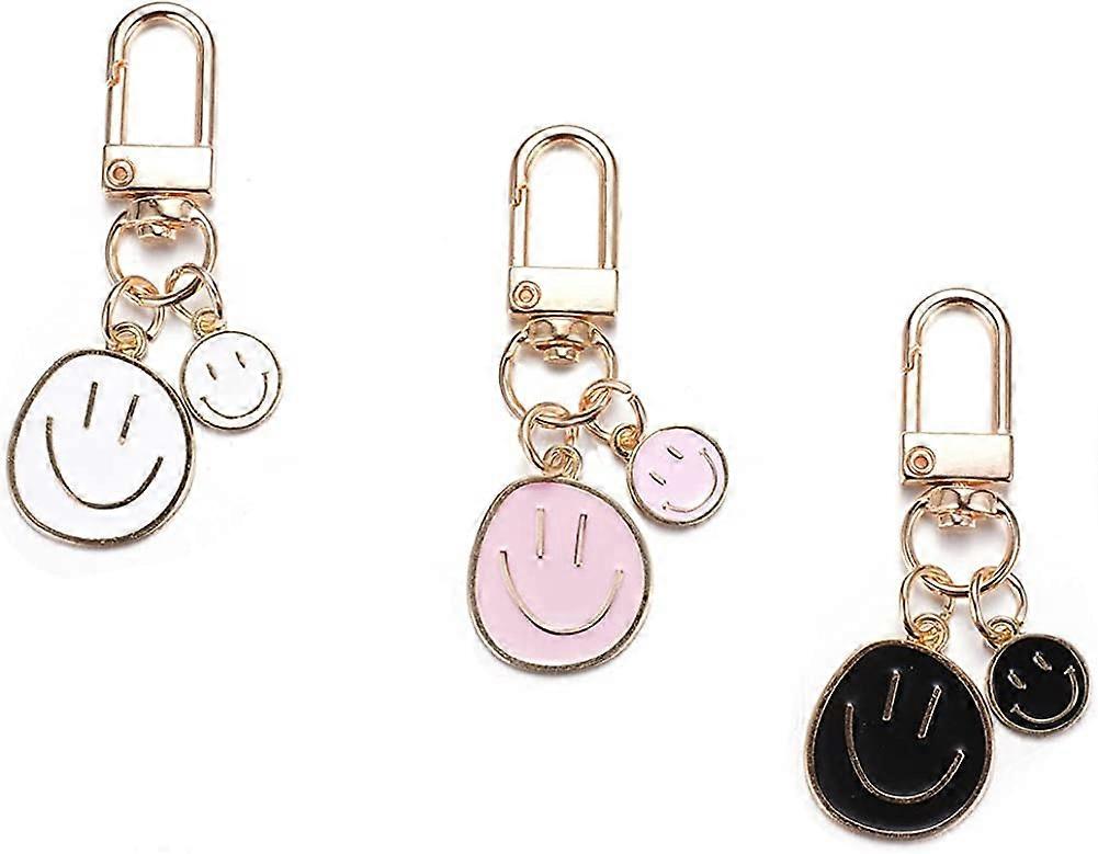 Cute Happy Expression Keychain for Women 3pcs Set Samll White Black Pink Car Keys Ring Accessories Clip