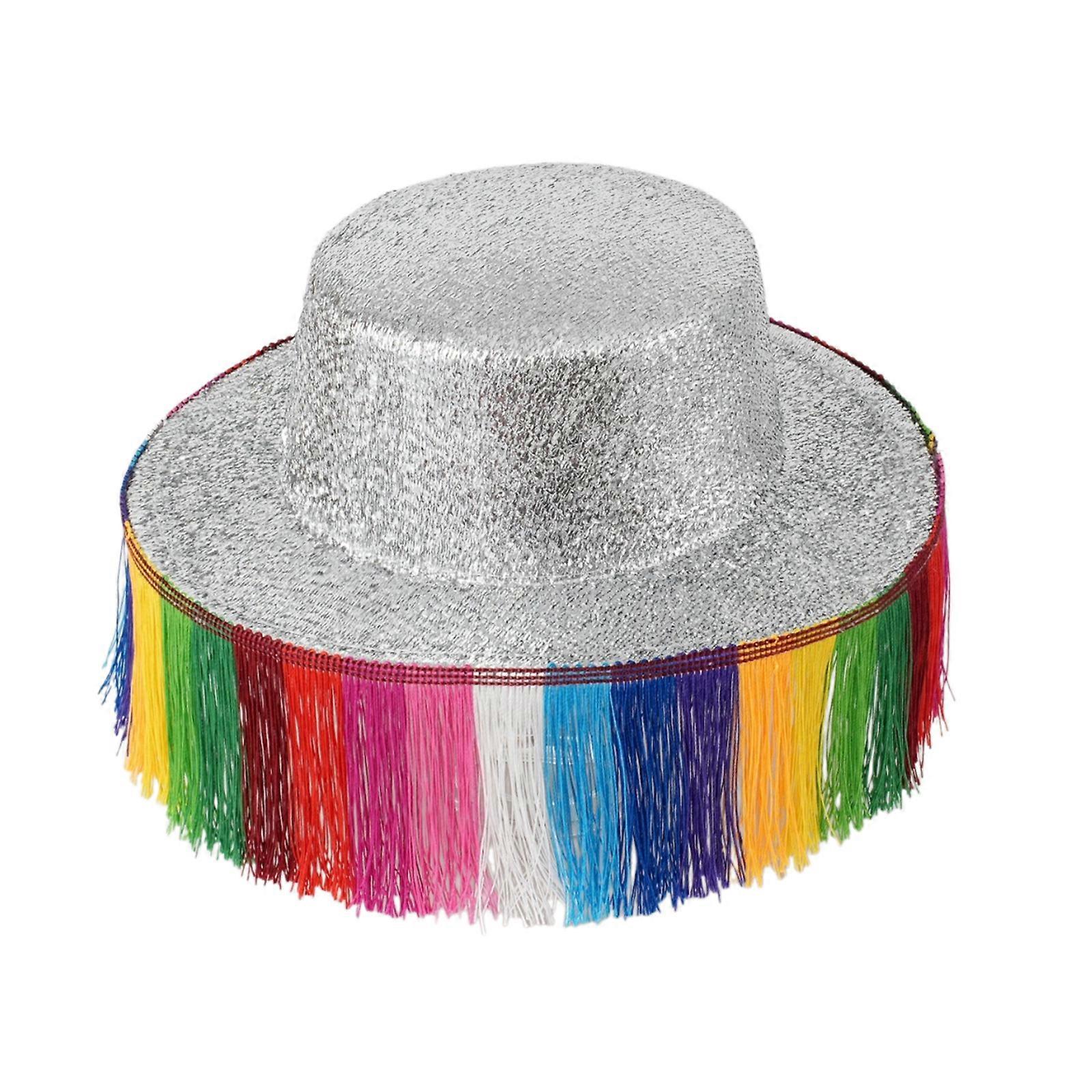 Shimmering Fringe Cowgirl Hat for Woman Breathable Cowboy Hats with Rainbow Color Fringe Banquets Party Photography Hat Silver