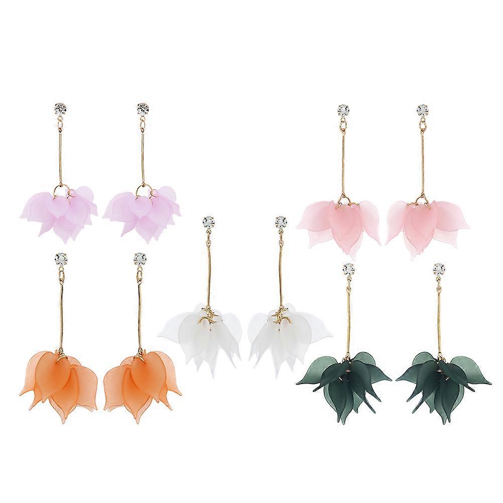 Assorted Color Flower Earrings for Women Trendy Dangle Earrings Comfortable Wear for Parties Weddings Size 5 Pairs