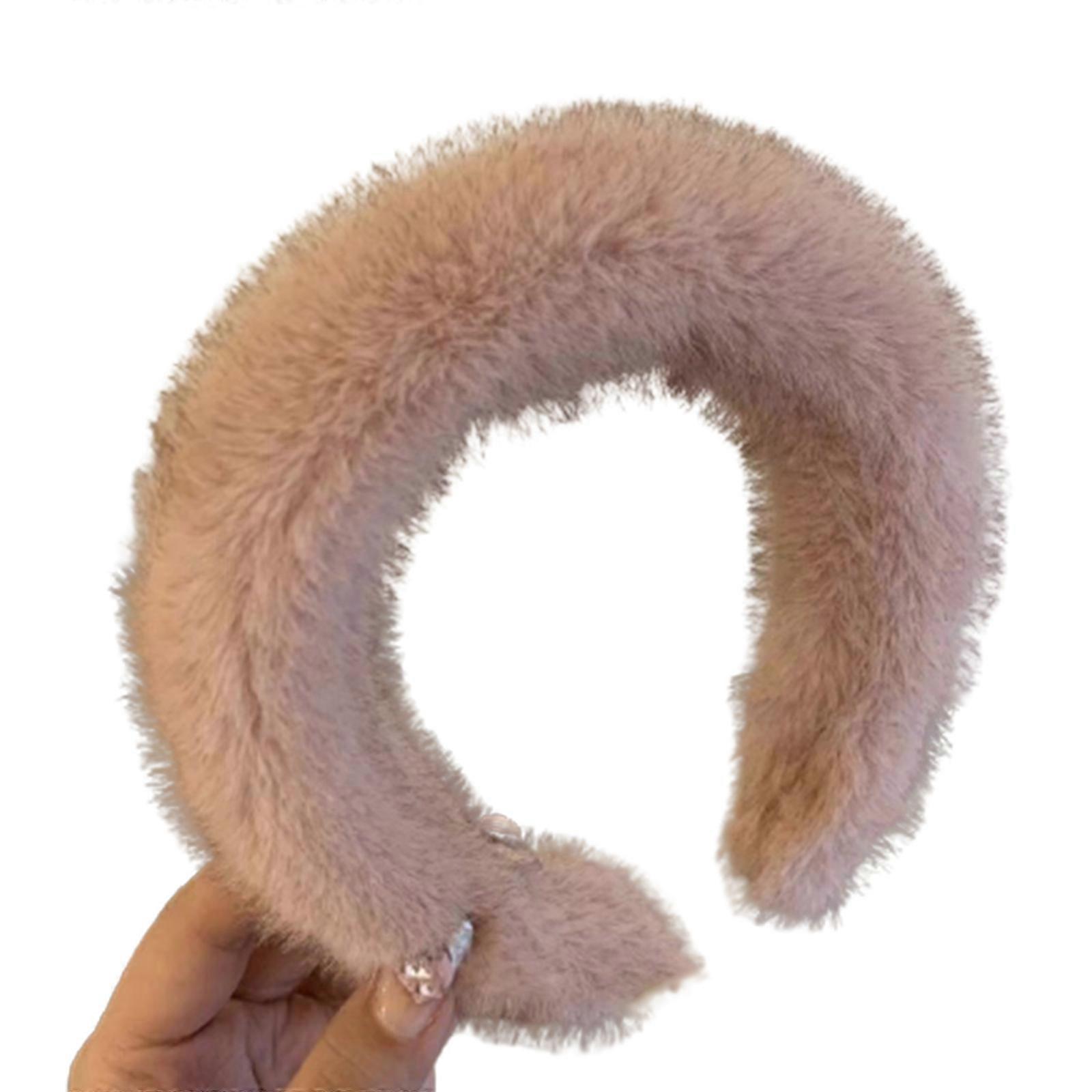 Plush Faux Furs Headbands for Woman Anti-Slip Headbands Casual Wide Brim Headband for Girls Washing Face Makeup Korean pink