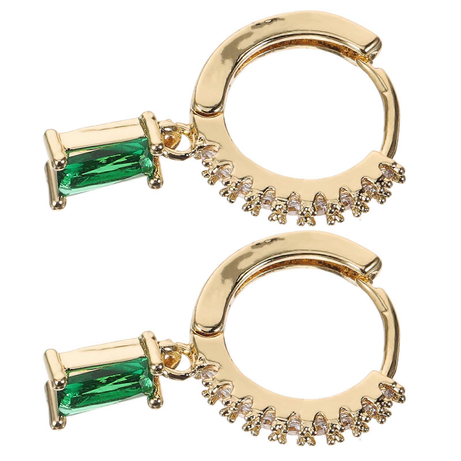 Dangling Earrings for Women Trendy Rectangular Shape Green Zircon 2.2x1.3cm 1 Pair