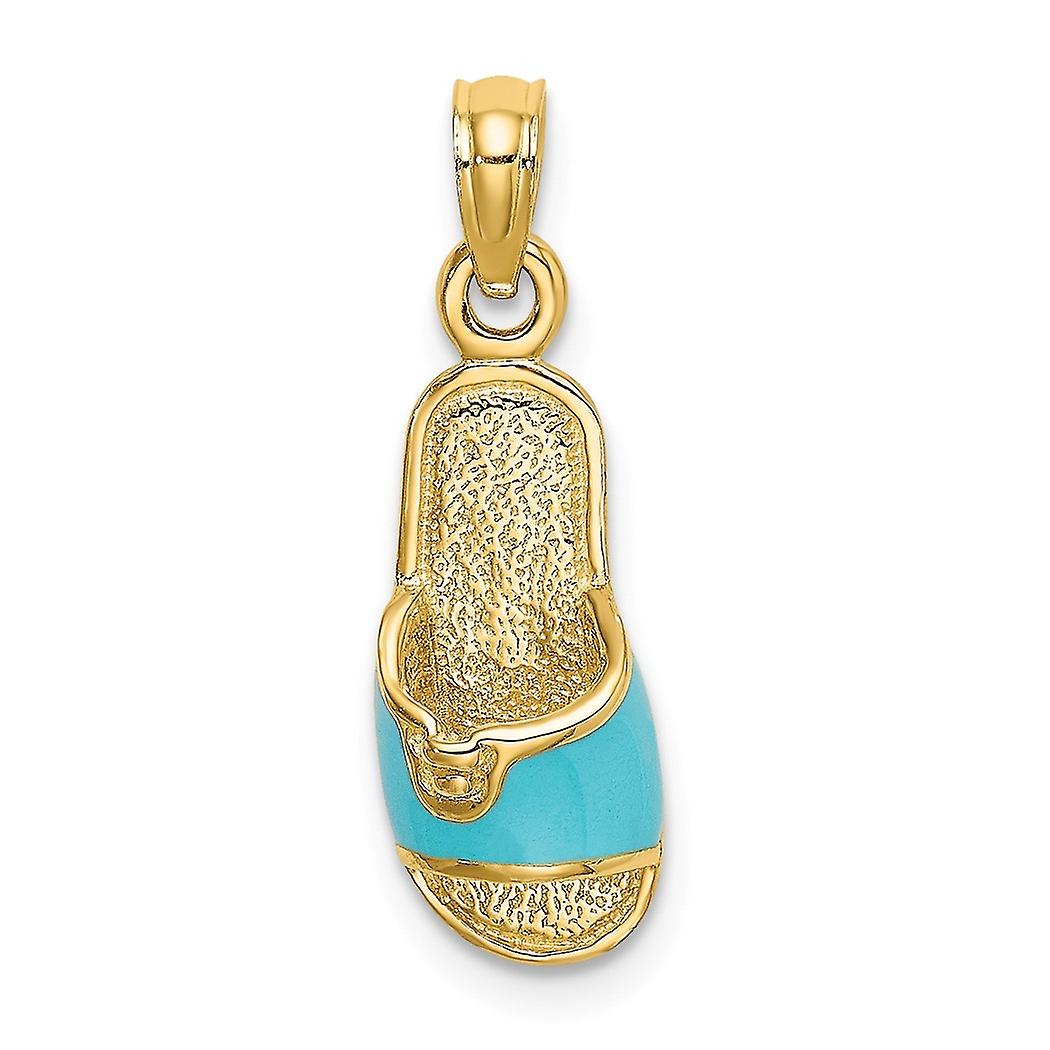 14k Gold Summer Slipper With Aqua Enamel Charm Pendant Necklace for Women - 1.6 Grams