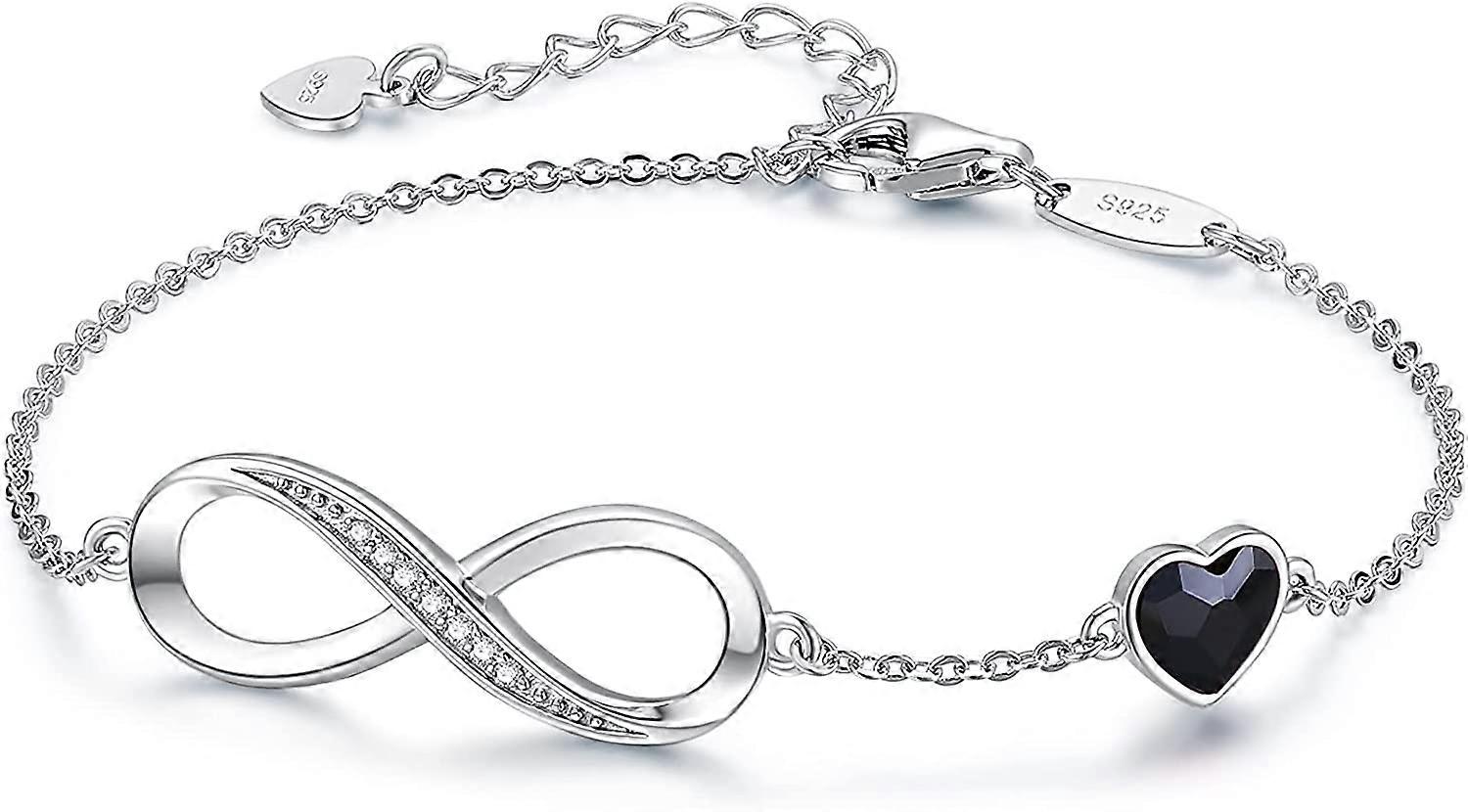 DESIGN IDEA The infinity sign means always and forever, and the heart crystal represents affection and love. Combining these two beautiful meanings, the infinity heart bracelet designed by is a symbol of eternal love and friendship. MATERIALS womens bracelets are made of gold-plated 925 sterling silver. Fastened with lobster clasp, this adjustable bracelet is embellished with a heart charm and an infinity symbol glittering with Austrian crystals. JEWELRY GIFTS The infinity heart bracelet comes in a nice gift box, presented as a jewelry gifts for women, birthday gift for mom, wife, girl, grandma, daughter, granddaughter, sister or friend; given as Christmas gift, Mothers Day gift, Wedding gift, anniversary gift, graduation gift or Valentine's Day Gift. BIRTHSTONE BRACELET Adorned with colored crystals, the heart bracelets are sparkling birthstone jewelry for women. Red birthstone is for January and July; Blue for March, September and December; White for April; AB for October; Yellow for November, etc. FASHION JEWELRY With exquisite craftsmanship and stylish design, this must-have bracelet pairs nicely with any outfit such as one-piece dress, shirts or jeans. Suitable for dating or formal occasion, it is a wardrobe staple.