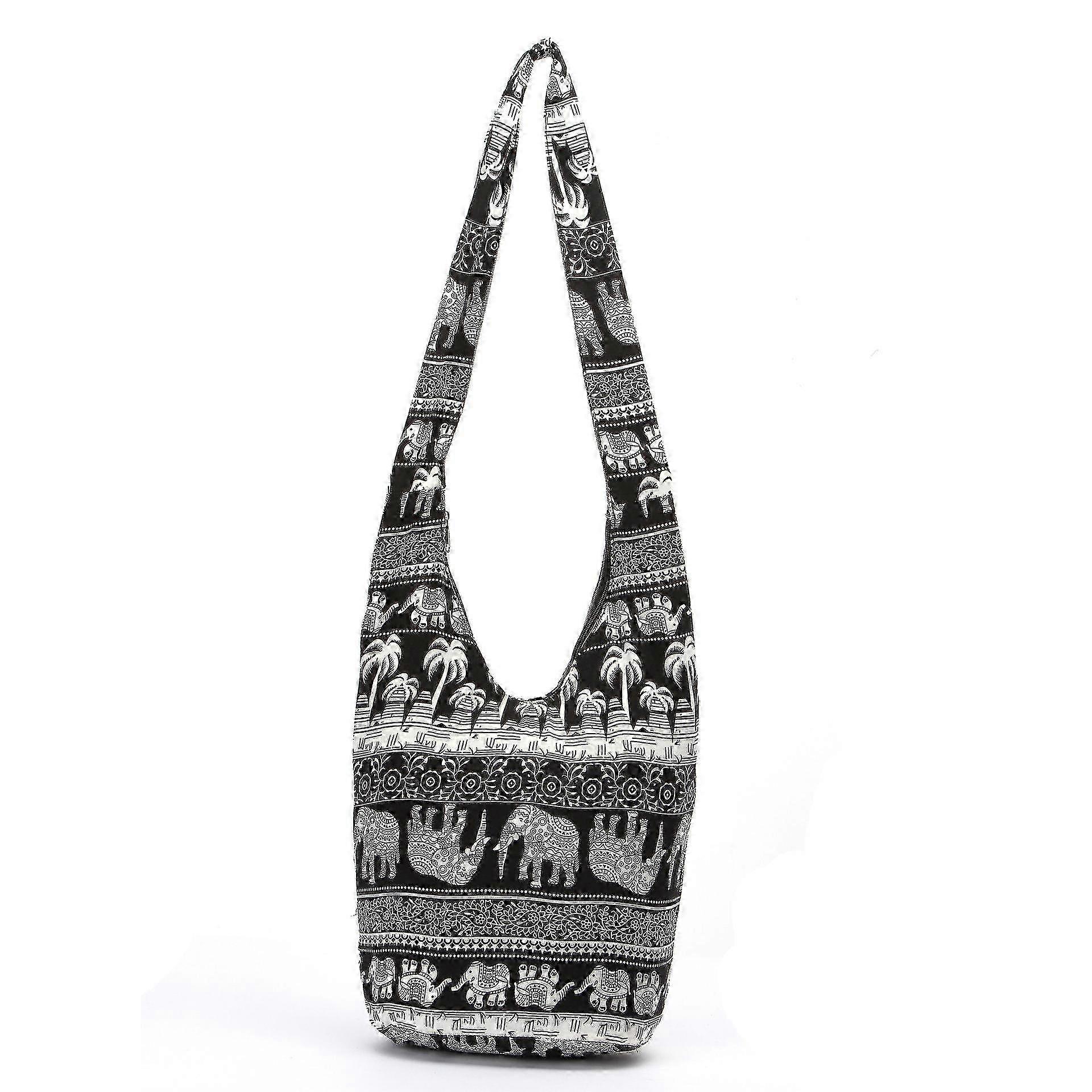 Ethnic Crossbody Bag for Women, Handcrafted Leather Shoulder Purse Black