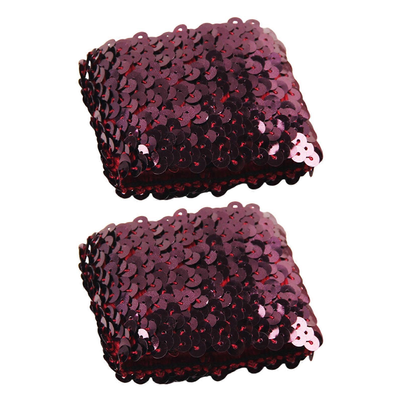 Elegant Fingerless Sequined Arm Sleeves for Women Cosplay Party Costume Props Cuffs Elastic Oversleeves Cuffs for Stage 7 rows of wine red