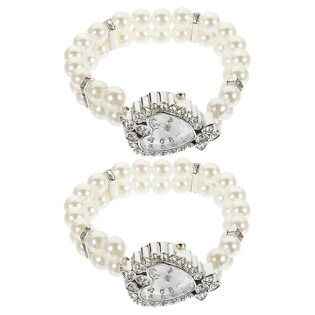 Elegant Watches For Women Rhinestone Crystal Pearl Bracelet Timekeeping Special Occasions 2Set
