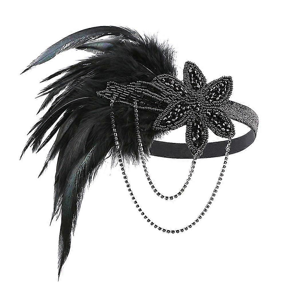 Elegant Black Feather Headband for Women - 1920s Flapper Style Hair Accessory for Weddings and Special Occasions