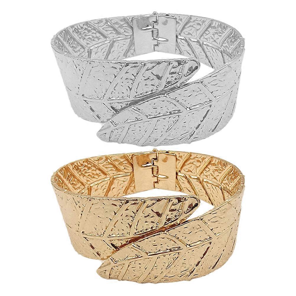 Cuff Bangle Bracelets For Women Leaf Shape Elegant Metal Adjustable 2Pcs