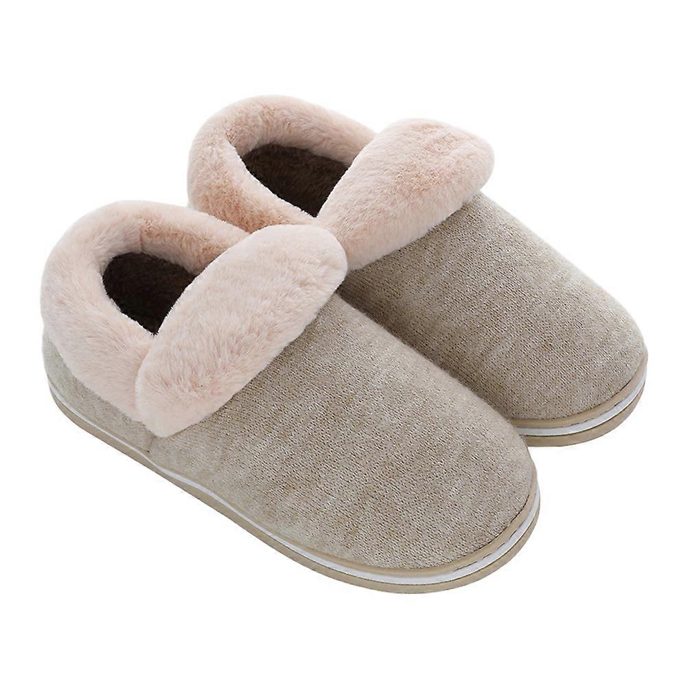 Khaki Winter Warm Slippers For Women Cover Heel Design Ideal For Bedroom And Living Room Leisure Use 1 Pair Warm Keeping