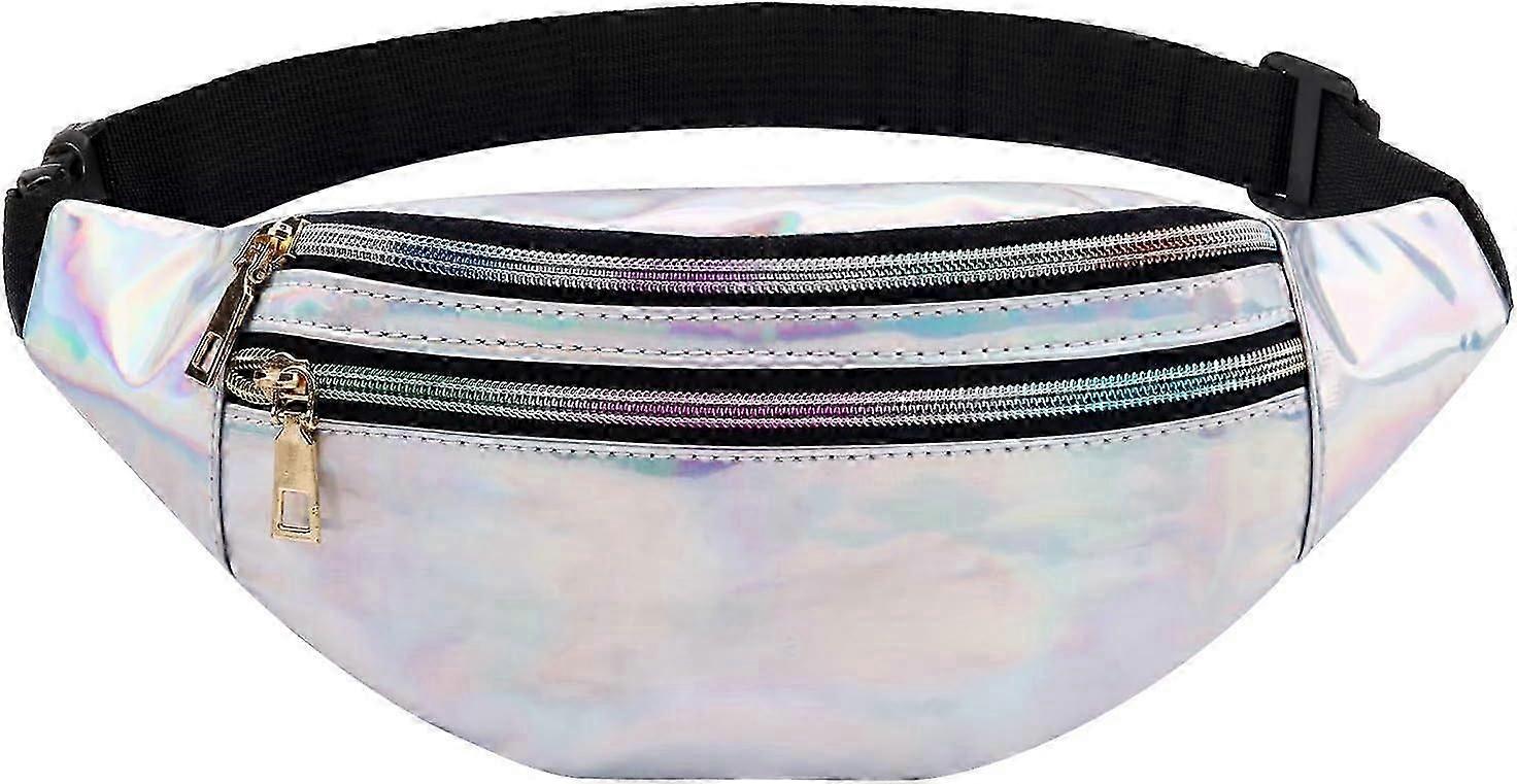 Glitter Belt Bag for Women Modern Chic Design - Silver Holographic Leather Large Waterproof