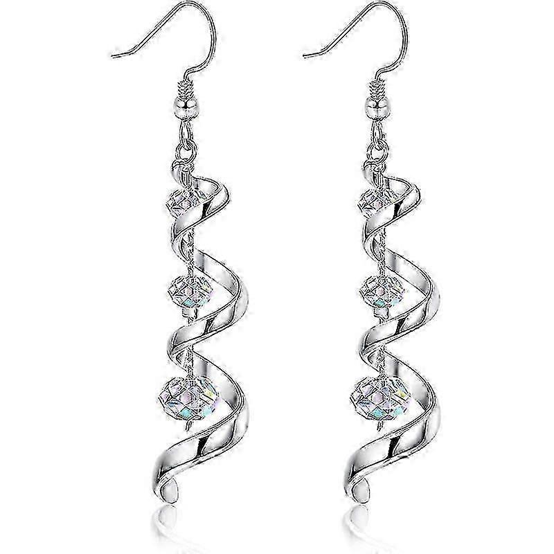 Crystal Long Dangle Earrings for Women, 925 Silver Fish Hook Earring, Multi Teardrop Spiral Ribbon Sparkling Crystal Dangle Earring Jewelry Gifts