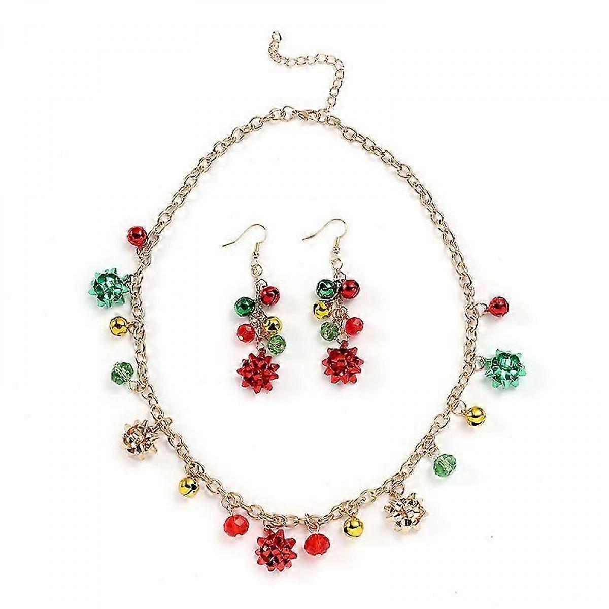 Christmas Jewelry for Women Christmas Necklace Earrings Set Jingle Bell Necklace Earrings Christmas Bow Earrings Red Green Beaded Xmas Neckalce Earrin