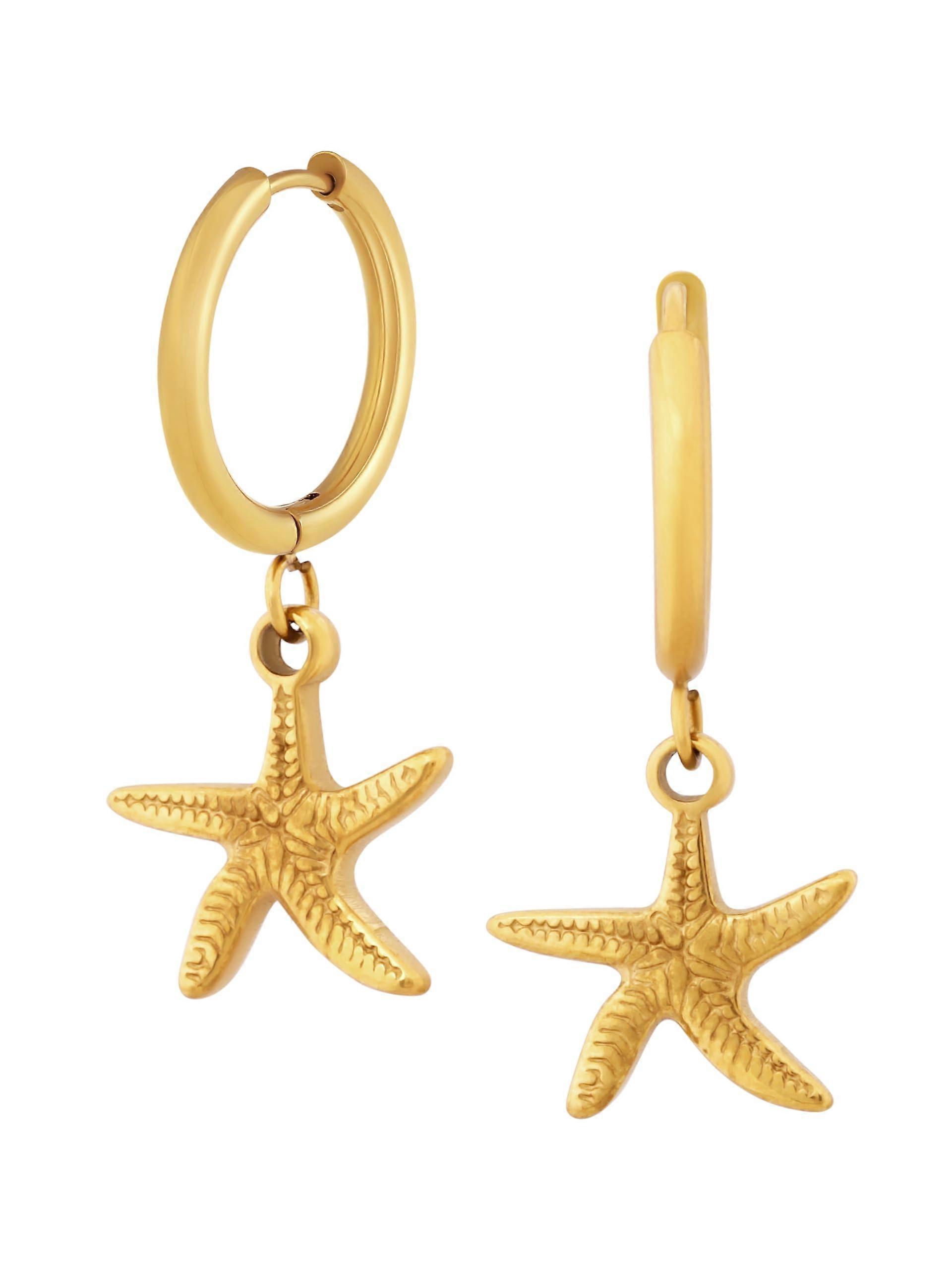 Golden-Tone Starfish Pulley Earrings For Women, Ocean Beach Summer Jewelry, Starfish Jewelry, Christmas Gift For Women