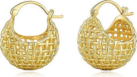 Gold Chunky Hoop Earrings for Women 18K Gold Filigree Hoop Earrings Lightweight Faceted Hoop Earrings Simple Thick Round Hoops Earrings Minimalist Geo