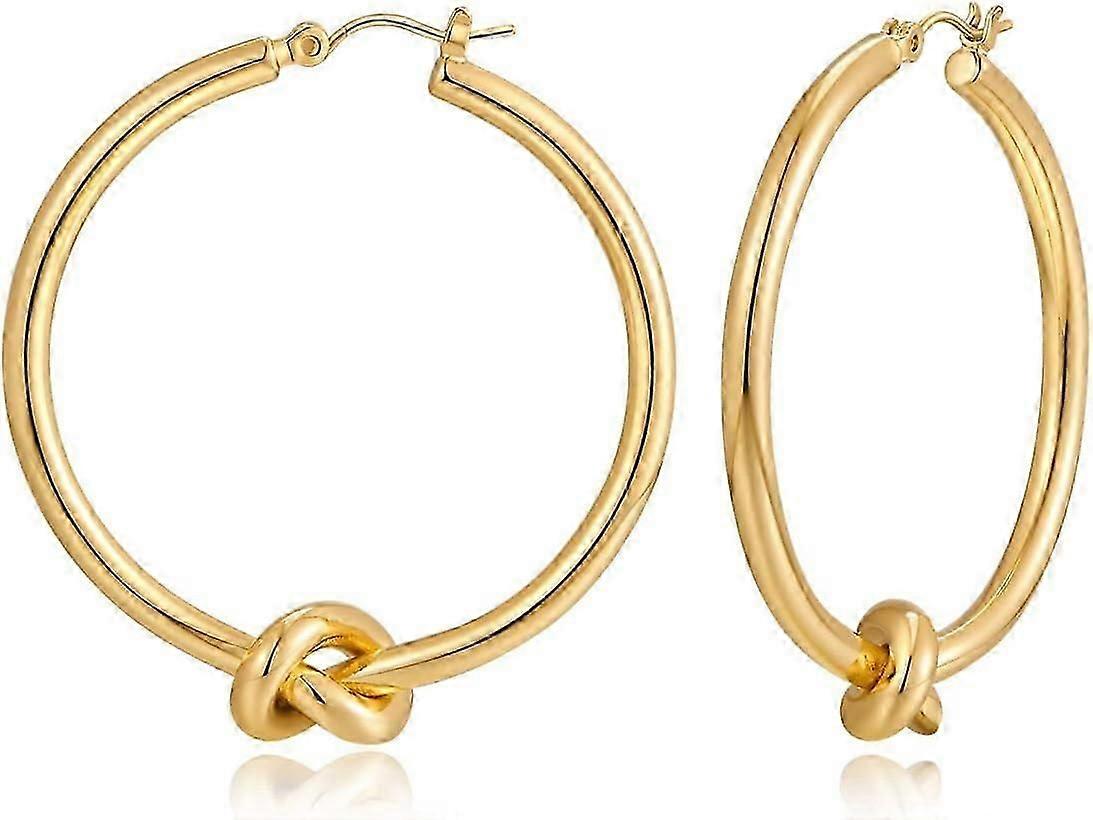 Gold Hoop Earrings for Women 18K Gold Plated Knot Hoop Earrings Statement Lightweight Thick Trendy Small Gold Open Hoops Fashion Jewelry