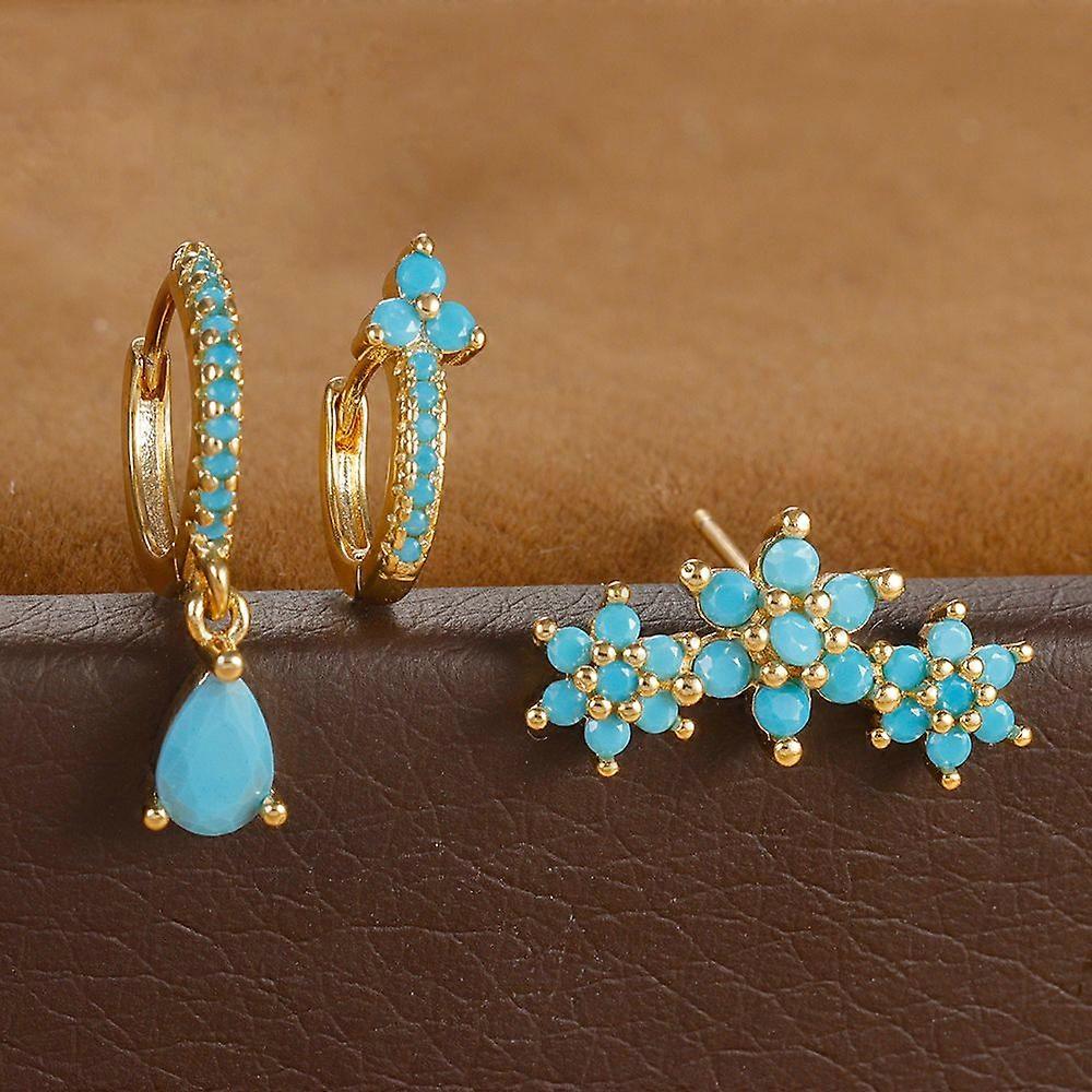 Set of 3 Geometric Stainless Steel Stud Earrings with Zirconia for Women Vintage Style Daily Life Party Jewelry and Cartilage Piercing