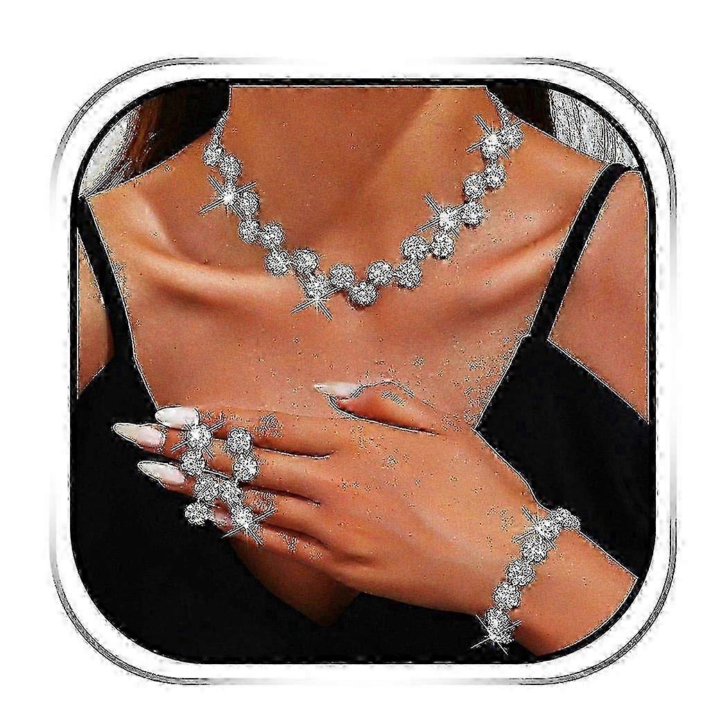 Silver Rhinestone Bridal Jewelry Set for Women - Sparkly Necklace and Accessories