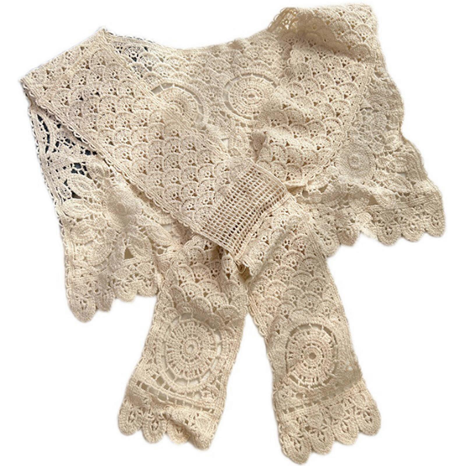 Scarf Shawl Wraps For Women Lightweight Lace Shoulder Wrap Crochet Shrug Scarf Solid Knitted Hollow-Out Shawls And Wraps Beige