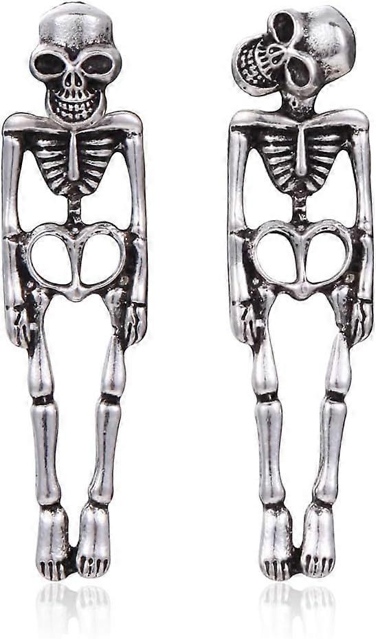 Skeleton Earrings for Women Men Silver Long Drop Fun Charms Western Men's Earrings Goth Fun Vintage Anime Punk Halloween Gothic Jewelry