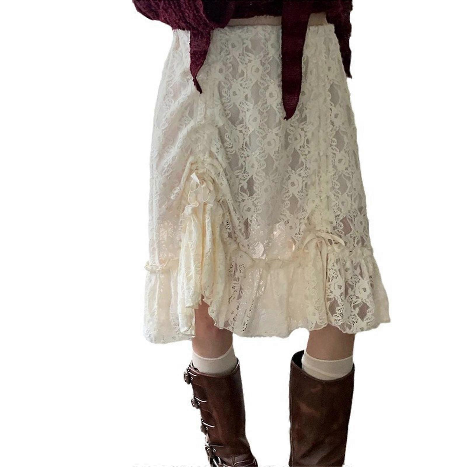 Stylish Skirt for Women Low Waist Korean Fashion Lace Hem A Line Drawstring Ruffle Dress color S