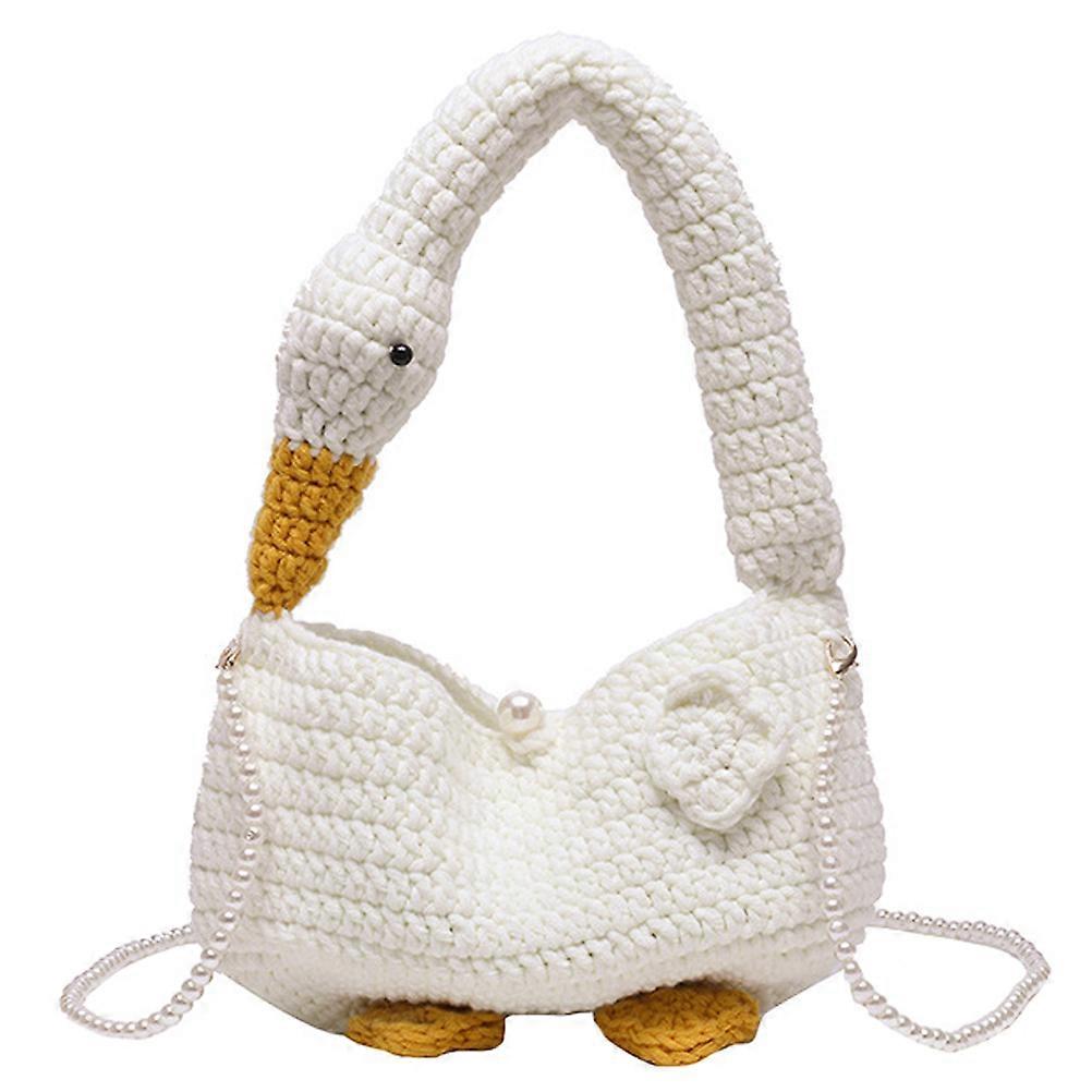Stylish Handmade Knitted Crossbody Bag for Women – Versatile Woven Shoulder Handbag with Spacious Capacity, Casual Retro Crochet Goose Design for