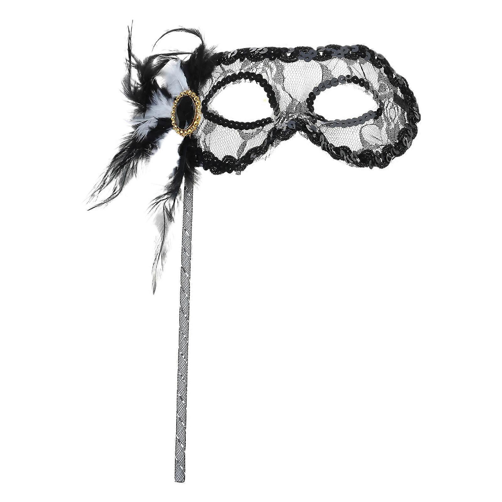 Feather Masquerade Mask with Stick for Women Halloween Carnivals, Masquerade Eyemask Costume Accsessory Half Face Mask Black