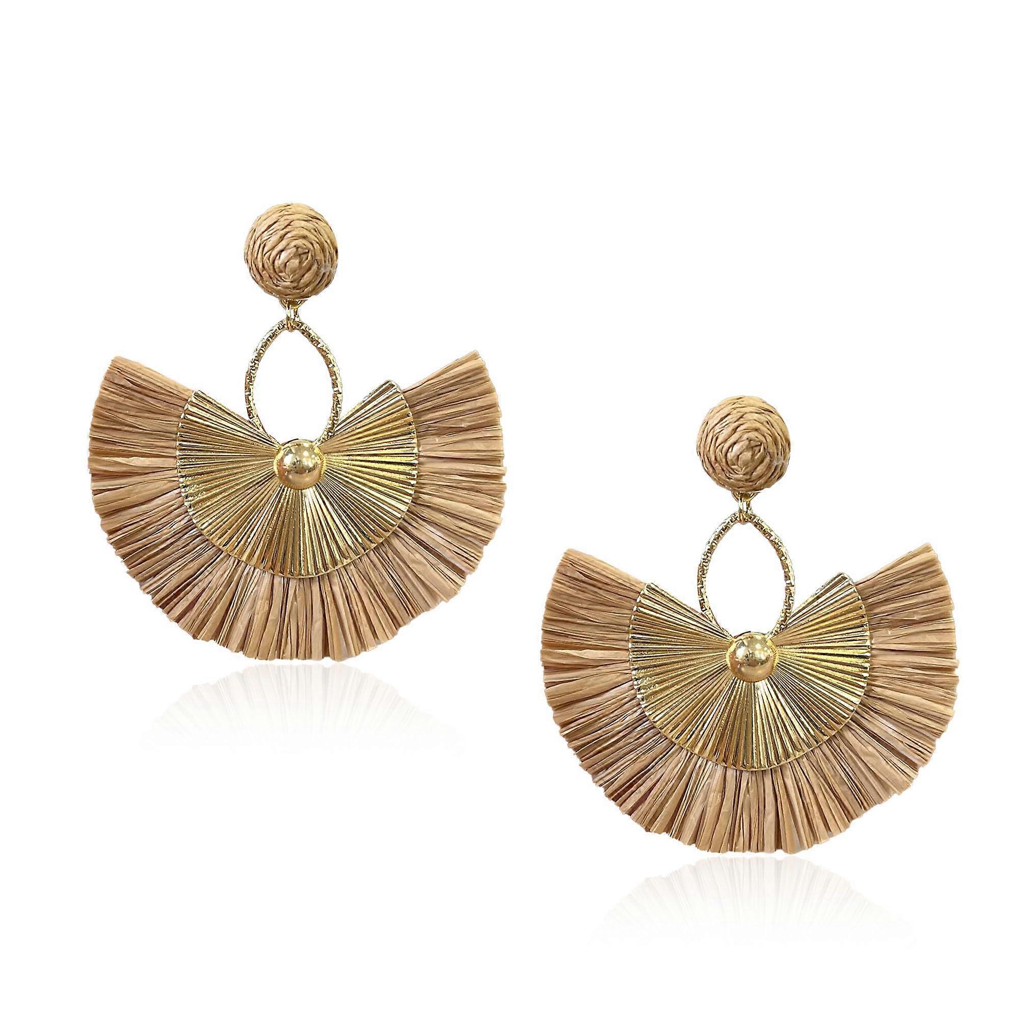 Straw Fan Bohemian Tassel Earrings For Women, Colorful Hair Fringe, Summer Beach Style, Lightweight Boho Jewelry