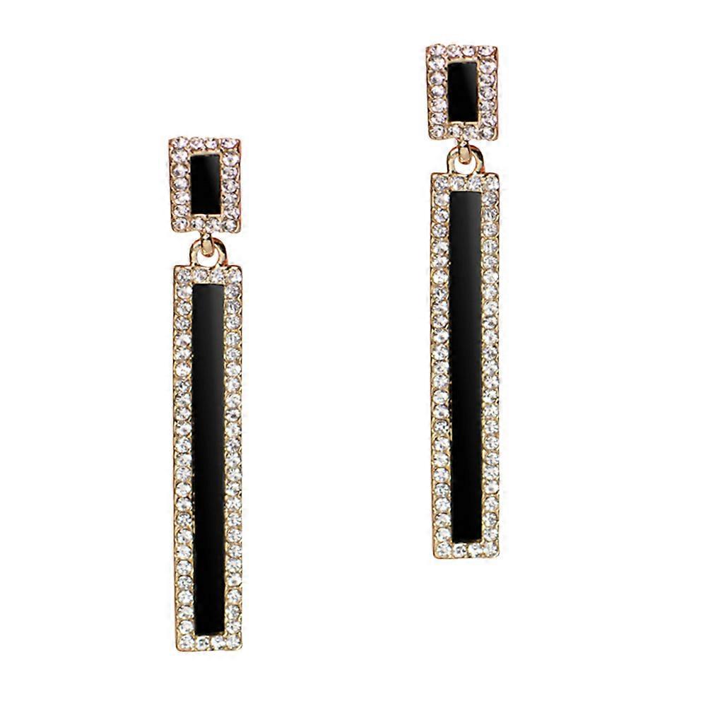 Dangle Crystal Earrings For Women Elegant Long Drop Jewelry Accessories Black 5 4 X 0 8 X 0 5Cm 1Pair