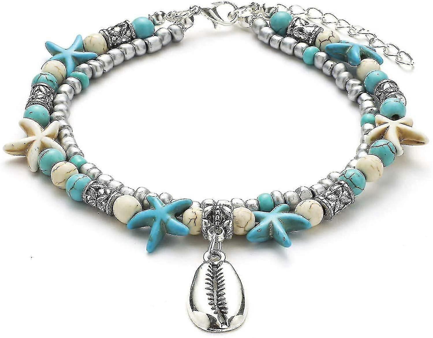 Turtle Anklets For Women Girls Multilayer Beads Handmade Beach Ankle Bracelet Set Boho Foot Jewelry 2 Pcs Animal Ankle Bracelet -