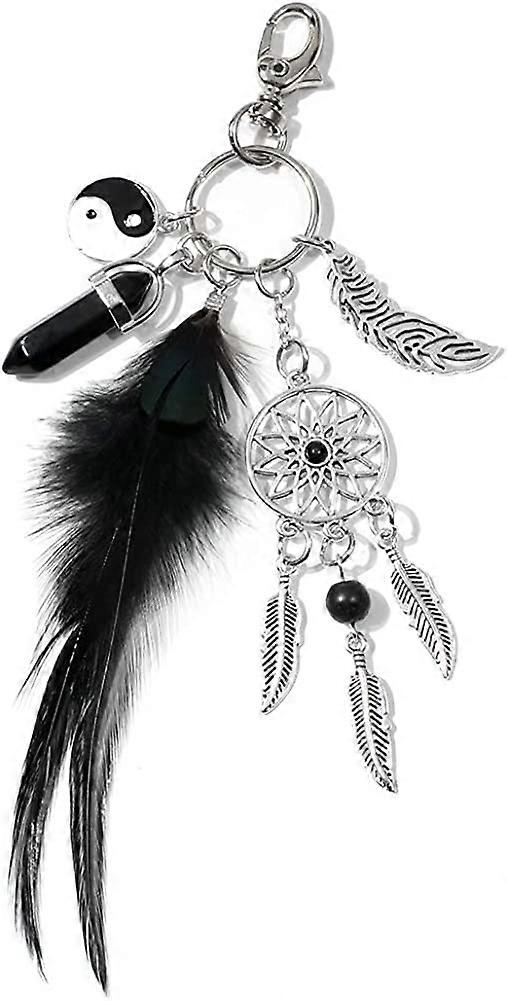 Dream Catcher Keychain for Women - Boho Feather Keychains Yin Yang Tai Chi key chain accessories for Backpack
