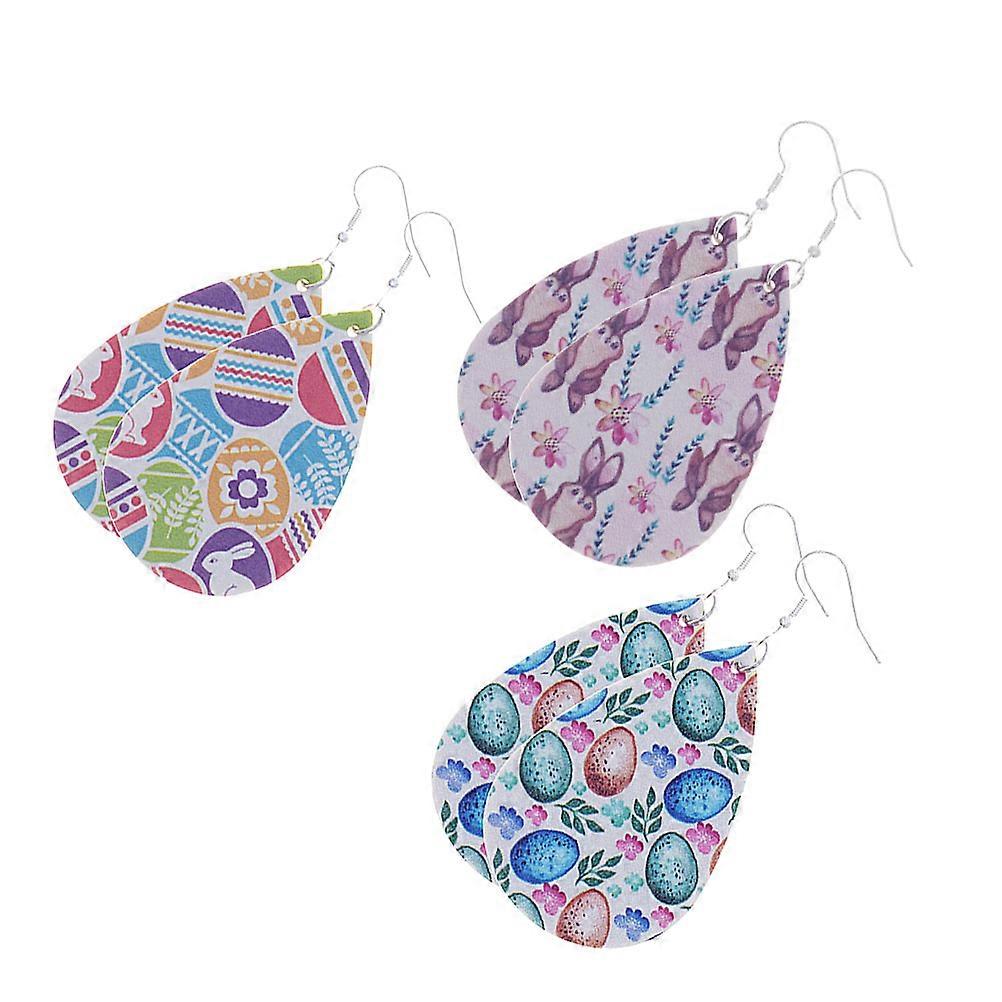 Drop Earrings For Women Easter Rabbit Pattern Water Drop Shape Leather Jewelry Decor Assorted Color 7X3CM 3Pairs