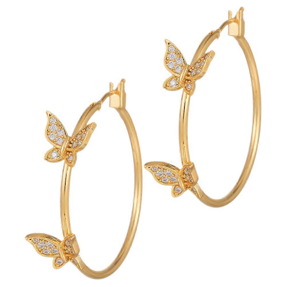 These elegant butterfly hoop earrings are made of metal material and having the delicate detail and rhinestone decors, unique design makes you more elegant and charming. Great for many occasions wearing, such as wedding, party, dating, show, make you charming and elegant. Features -Color:Golden -Material:Rhinestone, metal -Size:3.20X3.20X1.00cm/1.26X1.26X0.39in - and luxurious design, embellishment with rhinestone, showcasing noble temperament with these butterfly charm earrings. - Inlaid with rhinestone, butterfly earrings hoops are shining and eye-catching, fashionable and unique. - Butterflies are decorated on the earring hoops, comfortable and its dainty charm aesthetic looking will complement any outfit. - Earrings hoops are lightweight and comfortable, easy to wear, good luster, and non-fading for lasting wear. - Butterfly earrings are classic and versatile, ideal for weddings, proms, parties, photography props, etc. Package list: 1 x pair of butterfly hoop earrings