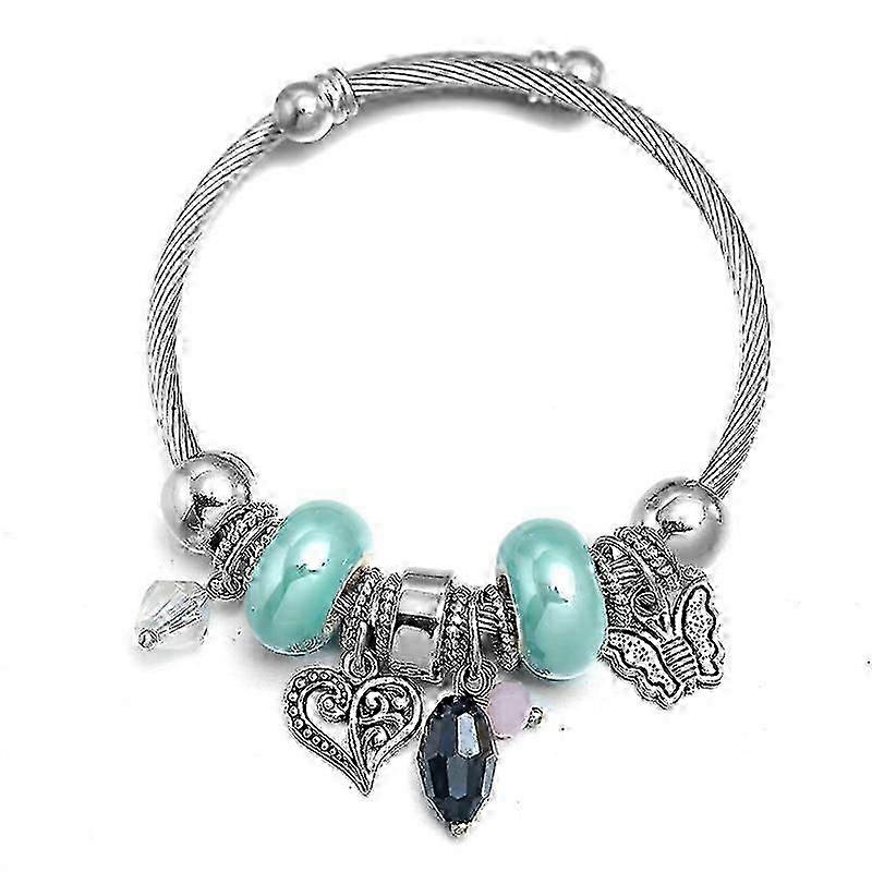 Trendy Stainless Steel Dragonfly Beaded Bracelet for Women - Adjustable 60mm Pink