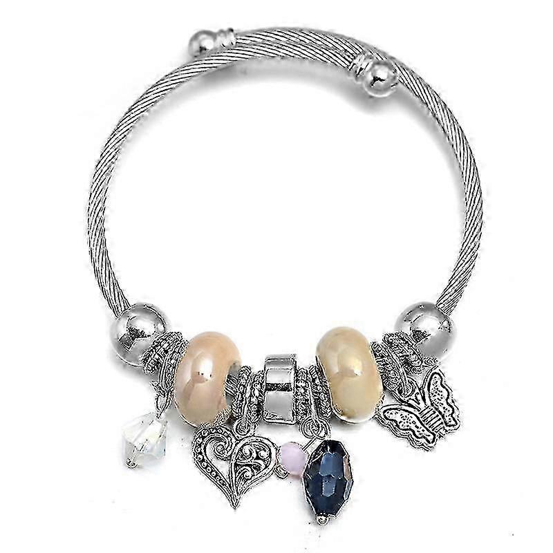 Trendy Stainless Steel Beaded Bracelet for Women - Adjustable 60mm, 6 Colors
