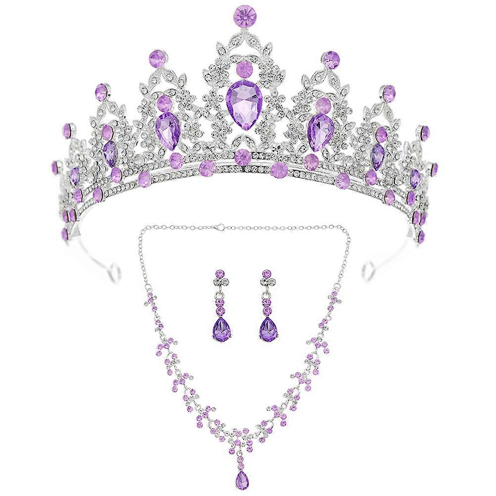 Delicate jewelry set, not only can be worn for yourself, but also impressive present option for women family or friends. Detailed craftsmanship, sturdy materials, can serve you better and longer. Widely applied for weddings, parties, dances, performance, prom and more special occasions, match with your different dressing outfits. Features -Color:Purple -Material:Rhinestone, metal -Size:15.50X15.50X6.00cm/6.09X6.09X2.36in - Every detail of the jewelries is carefully crafted, ensuring overall durability, withstand . - Unique crown and rhinestone design make you stand out from the crowd, the rhinestone jewelry set show your beauty. - The jewelry set can be suitable as a present choice for significant family members and friends. - Lightweight and comfortable, the wedding jewelry present ensuring you can enjoy your special day without any discomfort. - Including crown, earrings and necklace, the jewelries for bride provide you with everything you need for a better look. Package list: 1 x necklace 1 pair x earrings 1 x crown