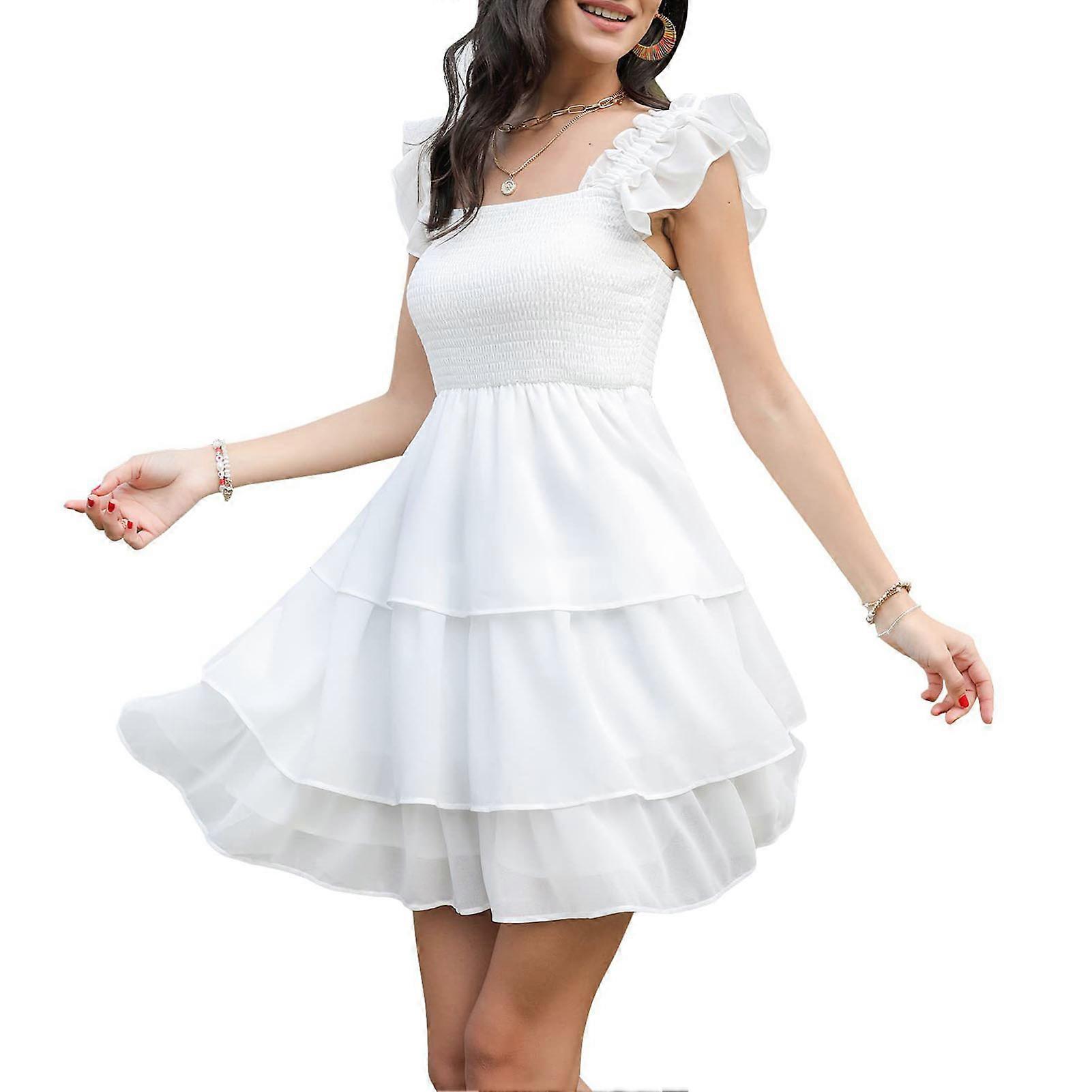 Sleeveless Dress for Women Spread Collar Layered Ruffle Short Dress Open Back Slim Fit Skirt 2 M