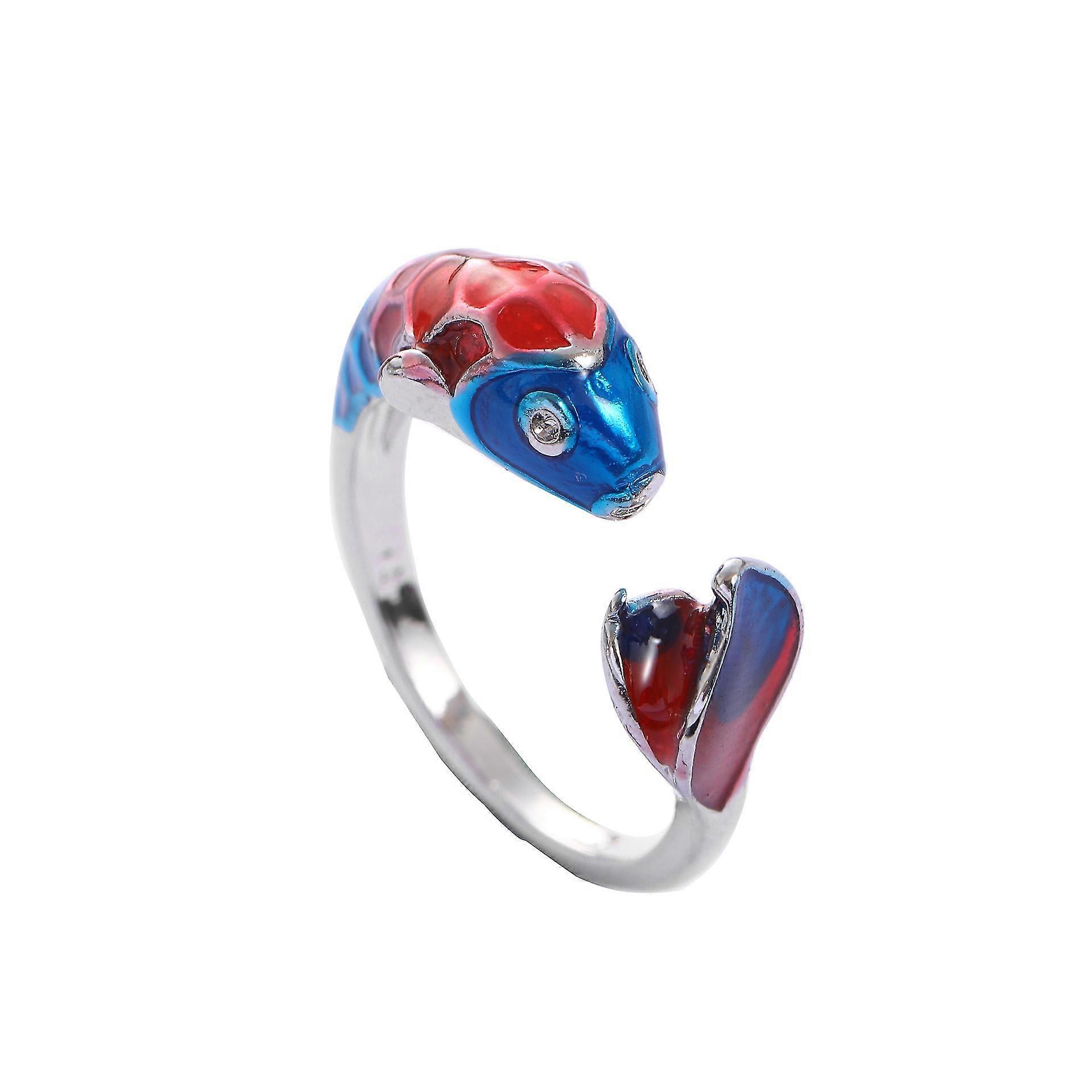 Punk Retro Lucky Koi Open Ring for Women Men Retro Silver Plated Blue Flower Adjustable Ring Buddhist Jewelry Gift