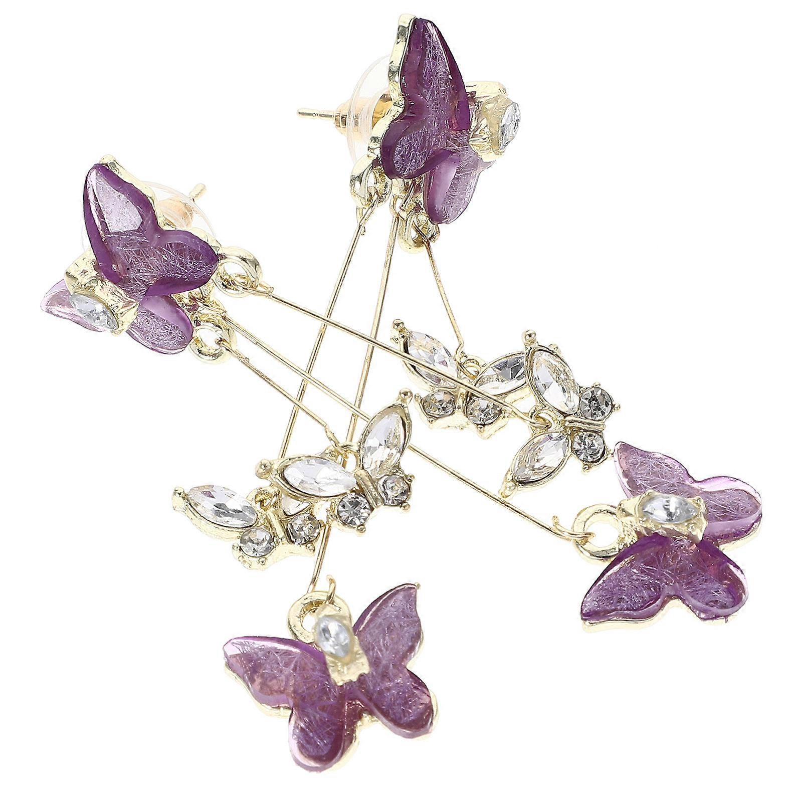 Purple Crystal Butterfly Tassel Earrings for Women Stylish Studded Jewelry Charm for Wedding, Valentine's Day, Prom, and Graduation Events