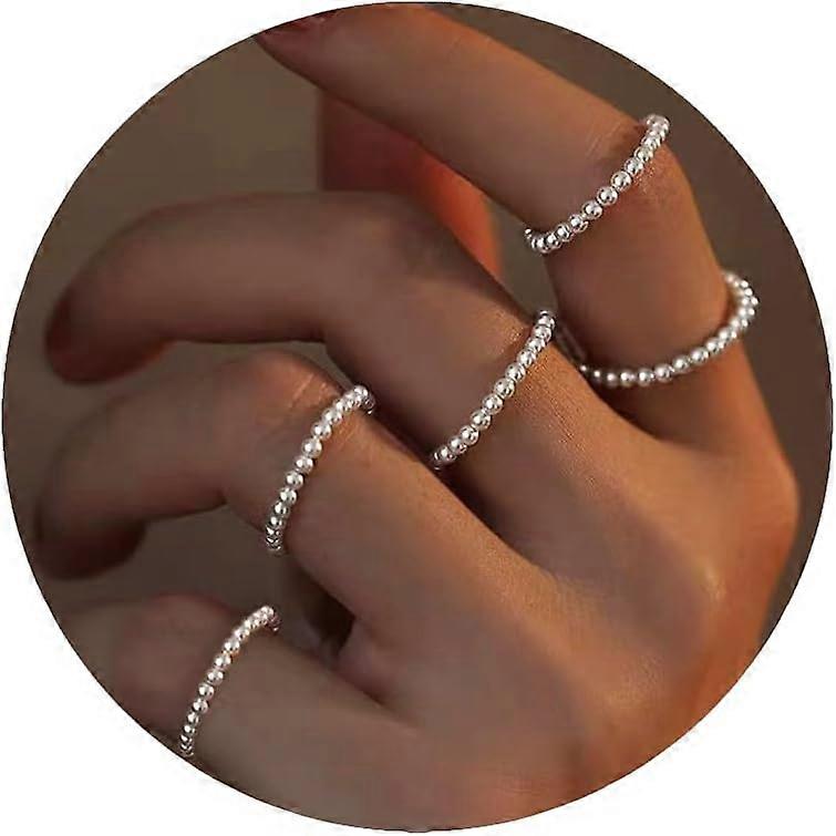 Pearl Rings for Women Stretch Beaded Stackable Rings Thin Dainty Rings Handmade Pearl Jewelry Statement Band Ring Comfort Fit Size 6