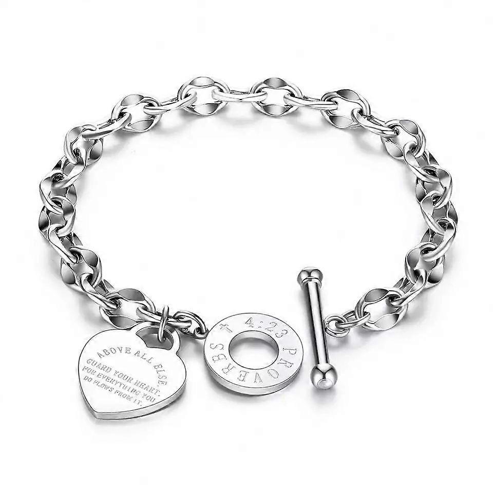 Heart Charm Bracelet for Women Teen Girls, Engraved Bible Verse Proverbs 4:23 Stainless Steel Bracelet with OT Clasp Love Pedant Link Chains, Birthday