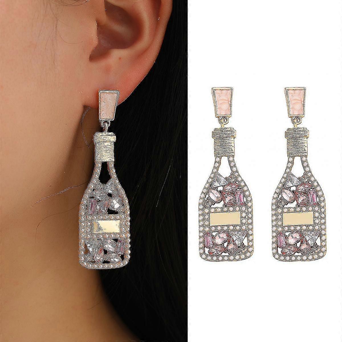 Beaded Champagne Bottle Earrings For Women Drop Dangle Earrings For Birthday Holiday Parties Gifts Fashion Fun Earrings For Women Statement Wine Earri