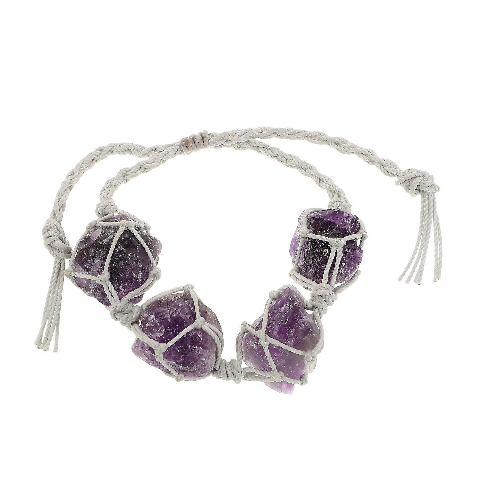 Bead Bracelets For Women Hand Woven Bracelet Amethyst Crystal Jewelry Daily Wear Purple Braided Adjustable 1Pack